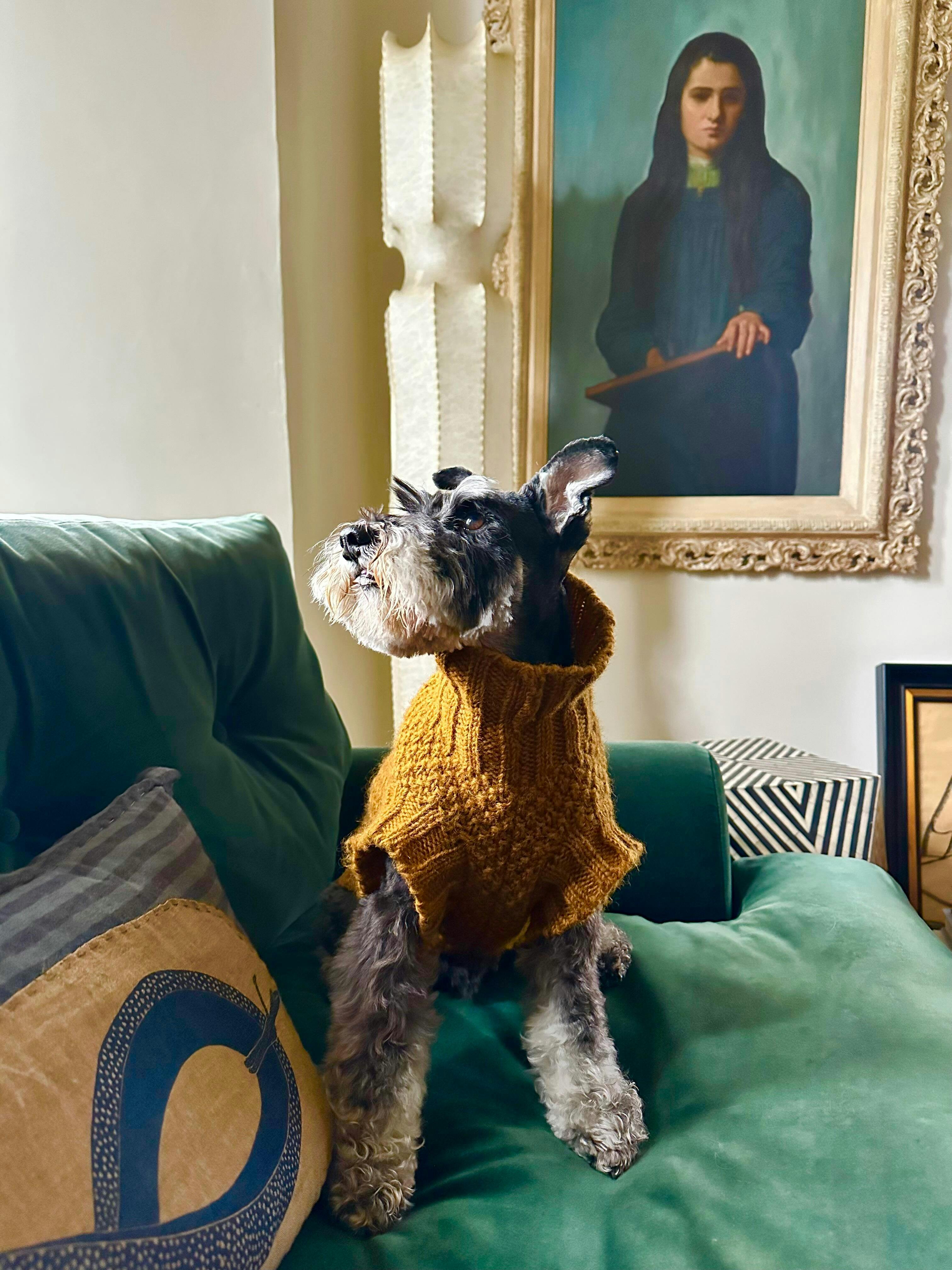 Your dog’s luxury wool jumper simply slips on and has a special loop hole for your dog's lead. Dog jumpers are perfect for chic trips out in Autumn, Winter, and also a good choice for lounging around in the house. If you tend to add an extra layer rather than turn on the heating when you’re at home, you can bet your dog would appreciate one too.