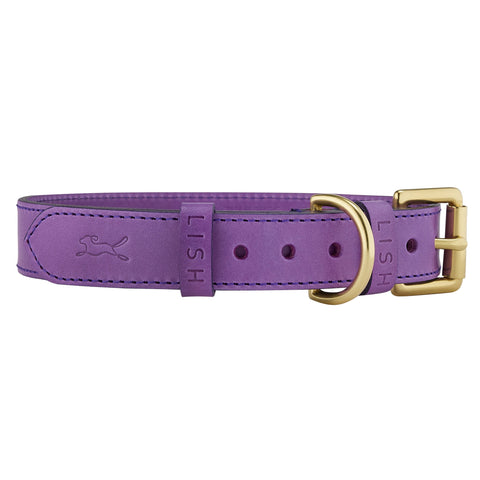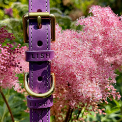 Countless hours go into hand-crafting each Coopers Violet Purple designer dog collar from the finest Italian Leather and hand-crafted in the UK. The difference is in the details, from sturdy solid brass fittings, an extra loop to keep the leather tip flat and neat and the new LISH imprint – the hallmark of quality and luxury. The Coopers Violet Purple Leather dog collar is designed by Lilly and cut by skilled British saddle makers.