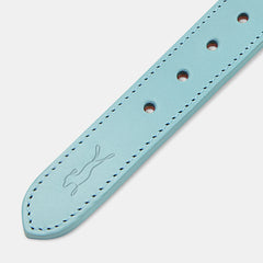 The Spencer Powder Blue Dog Collar is strong enough to last a lifetime and yet soft and supple so it's gentle on your dog's neck. An icon of understated design each one is hand cut and finished by traditional British saddle-makers.