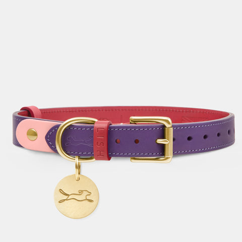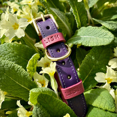 Unique to LISH London, the Spencer Luscious Purple luxury dog collar was designed by Britain’s leading dogwear designer Lilly. Each collar is cut and stitched by hand by skilled British saddle makers.