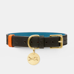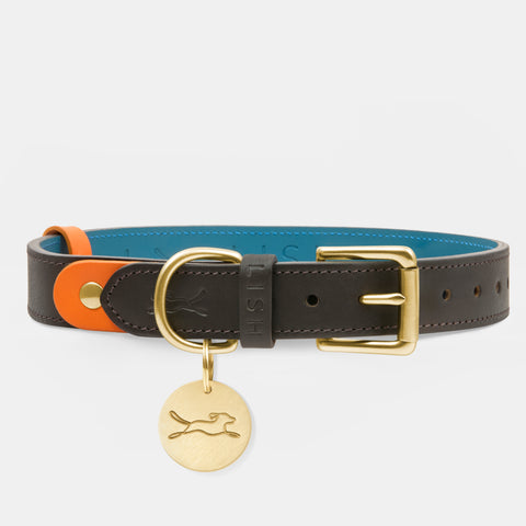 Other details that lift it out of the ordinary include burnished brass rivets, solid brass fittings lacquered to keep their lustre and an extra loop to keep the collar tip lying flat, the perfect finishing touch for your dapper dog.