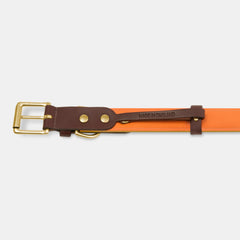 Other details that lift it out of the ordinary include burnished brass rivets, solid brass fittings lacquered to keep their lustre and an extra loop to keep the collar tip lying flat, the perfect finishing touch for your dapper dog.