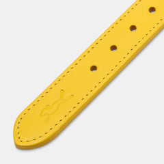 The Spencer Buttercup Yellow Dog Collar is strong enough to last a lifetime and yet soft and supple so it's gentle on your dog's neck. An icon of understated design each one is hand cut and finished by traditional British saddle-makers.