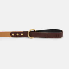 The Spencer Gingerbread Brown luxurydesigner dog Lead looks especially good teamed with the matchingbrown tan leather luxury dog collar. May we also suggest pairing up with the real wool designer Smithy Ale & Chestnut Brown dog sweater for jet setting about town.
