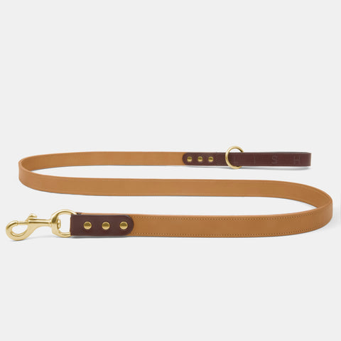 Exclusive to LISH The Spencer Gingerbread Brown Italian Leather designer dog lead