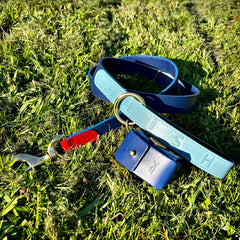 Coopers Navy Blue Leather Poop bag dispenser also matches up with the Claredale or Coopers Navy dog lead and dog collar