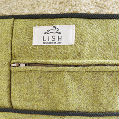 For the ultimate in hand-crafted luxury, treat your dog to a designer dog bed in our signature Harris Tweed specially designed by LISH. The Fern Green luxury Dog Bed has supersoft Harris Tweed sides and base with  a cosy, hardwearing lamb fleece on top. We make the beds here in London, cutting and pinning the fabric and finally sewing on the appliqué details all by hand. We can add personal initials or symbols specially for your dog – just ask us when you order.
