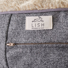 For the ultimate in hand-crafted luxury, treat your dog to a designer dog bed in our signature Harris Tweed specially designed by LISH. The Grey luxury Dog Bed has supersoft Harris Tweed sides and base with a cosy, hardwearing lamb fleece on top. We make the beds here in London, cutting and pinning the fabric and finally sewing on the appliqué details all by hand. We can add personal initials or symbols specially for your dog – just ask us when you order.