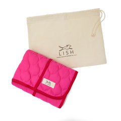 The Winkley Pink Cotton Designer Pet Travel Blanket, is made with eco friendly cotton and handcrafted in England. Double layered and reversible, folds up easily so perfect for jet setting around to keep your dog comfortable.