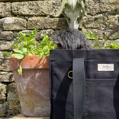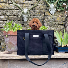 Carry your loved small dog in resplendent style. Made from a breathable 100% certified sustainable cotton fabric, the Watney Tote luxury Black Dog Carrier is an iconic piece of British design that is perfect for city travel for both you and your pooch.