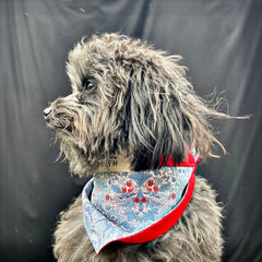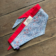 To celebrate our wonderful King Charles III Coronation year, Creative Director Lilly Shahravesh has designed a special collection for your much loved pups. Designed with an authentic floral blue Liberty print and a soft red cotton poplin on the reverse. Handcrafted to naturally shape round your dog's neck for that glamorous retro styling.