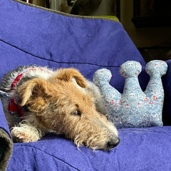 This special sustainable Pet collection for the King's coronation, also has the following matching accessories; the floral designer Dog Bow Tie and Crown plush squeaky toy crown. ** the majority of our Coronation gift sets are made to order so please allow a longer delivery time