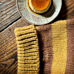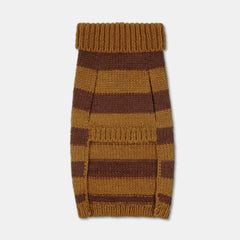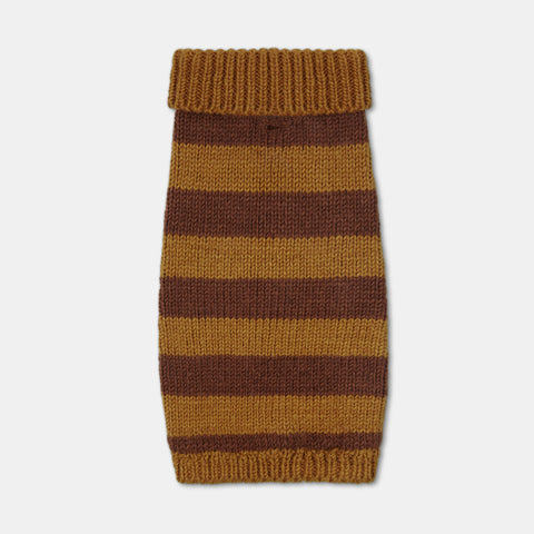 The hand knitted Smithy Ale & Chestnut Brown Stripe Luxury Dog Sweater is perfect for all small to medium sized dog breeds to keep them warm and cosy and comforted.