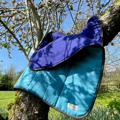 The Padbury Pure Linen Teal Blue & Blueberry Purple Luxury Reversible Dog Duvet pet blanket is quilted with recycled wadding and made from pure breathable and moisture wicking linen. Dogs love snuggling into it or simply lying on it. If your dog’s designer pet blanket needs a clean just pop it in the machine. Great for the car, on beds, armchairs or where ever your pup wants to hang out.