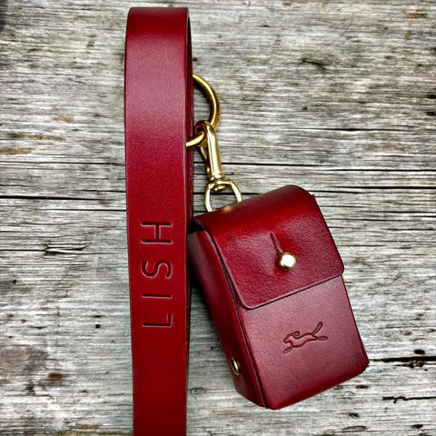 The sustainable Coopers Maple Red Leather Poop Bag Dispenser is exclusive to LISH.