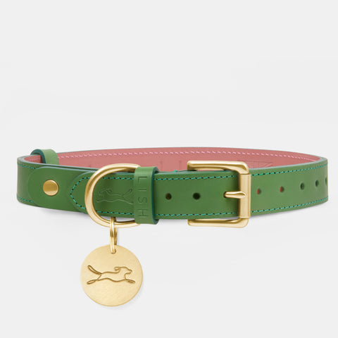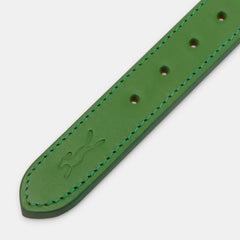 The Spencer Pistachio Green Dog Collar is strong enough to last a lifetime and yet soft and supple so it's gentle on your dog's neck. An icon of understated design each one is hand cut and finished by traditional British saddle-makers.
