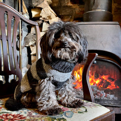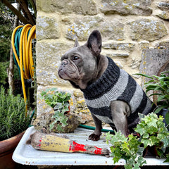 The hand knitted Smithy Black Stripe Designer Dog Sweater is perfect for all small to medium sized dog breeds to keep them warm and cosy and comforted.