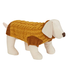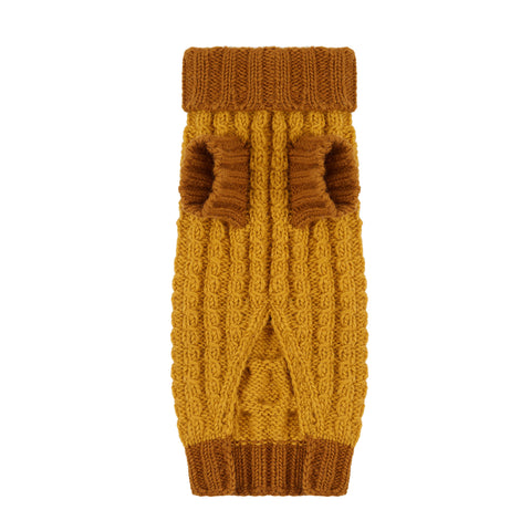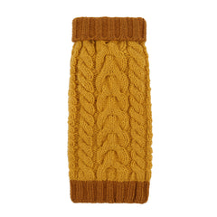 The Wilmot Honey yellow and mustard designer cable dog jumper comes in Small, Medium and Large sizes. Please spend a moment to measure your dog and check the size guide so that you get the best fit. Your dog jumper is easy to keep clean. Simply wash in the machine on the wool cycle or handwash, re-shaping while damp.